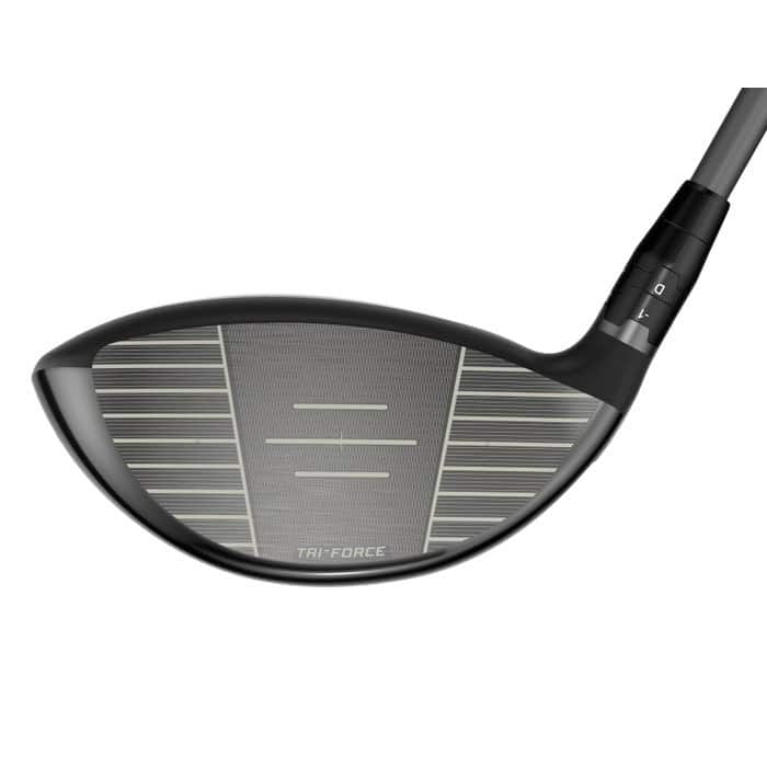 Unreal speed and distance, even on off-centre hits, made possible by a breakthrough Tri-Force Face that layers ultra-thin, high-strength titanium, poly mesh, and carbon fibre into a fully integrated speed system—a combination never before used in driver face design.